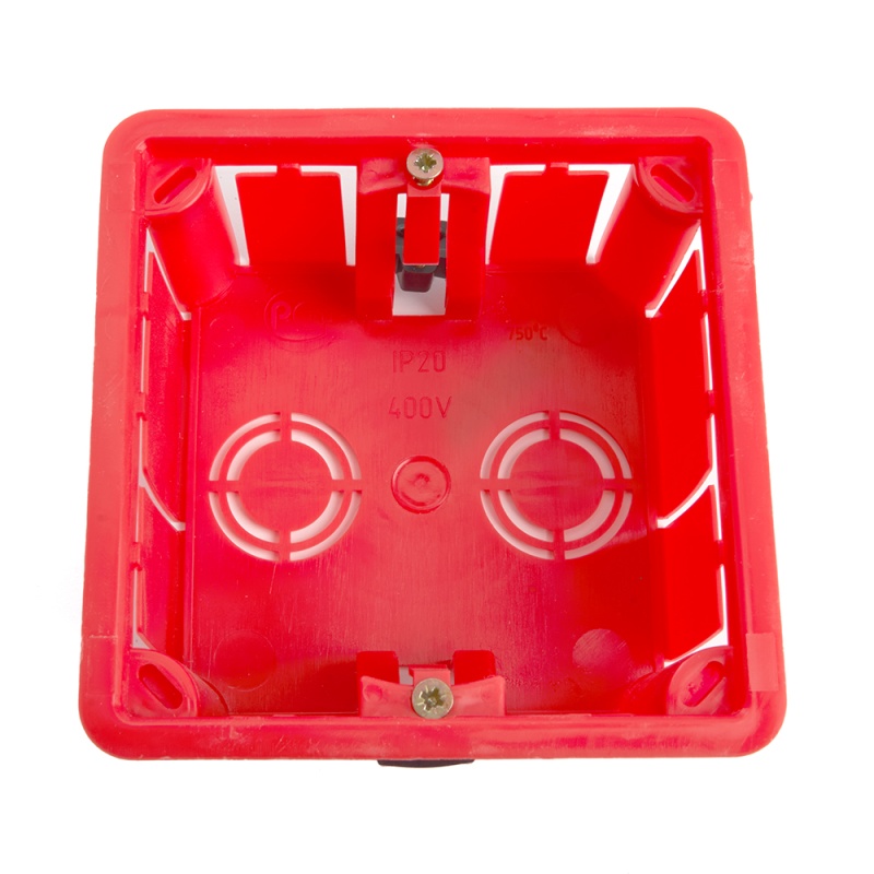 Коробка монтажная для полых стен, с пластиковыми зажимами, с крышкой, 92*92*45мм STEKKER EBX30-02-1-20-92, красный