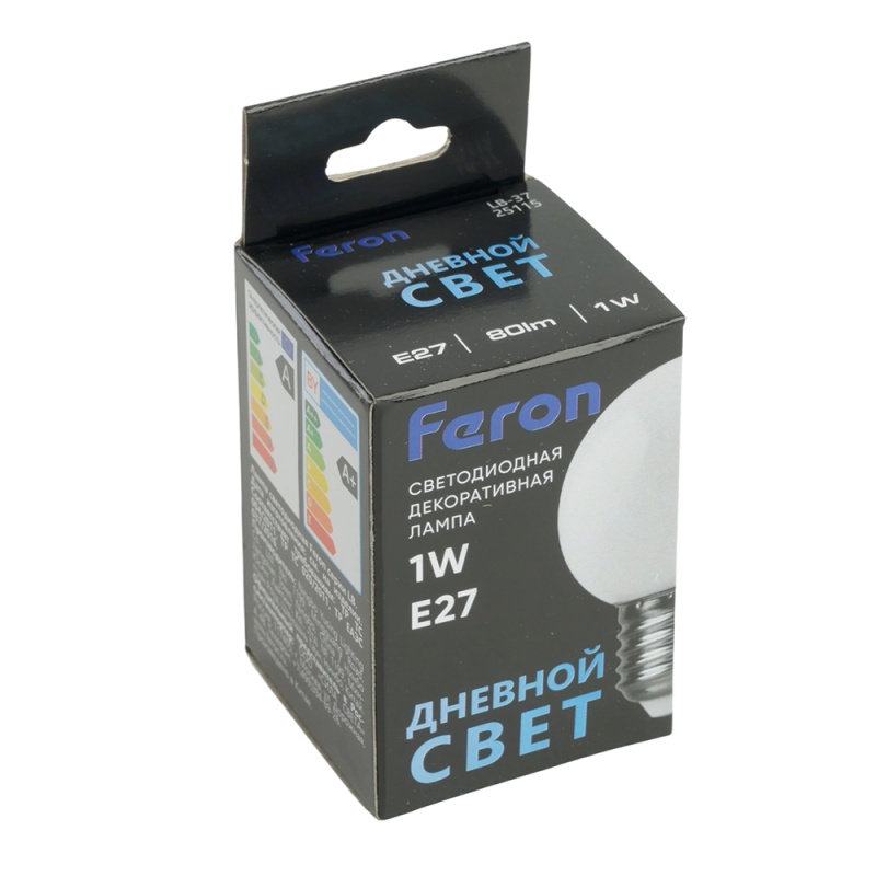 Характеристики Лампа светодиодная Feron LB-37 Шарик E27 1W 230V 6400K матовый