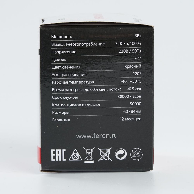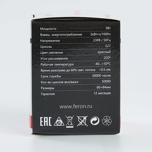 Характеристики Лампа светодиодная Feron LB-371 Шар E27 3W 230V красный