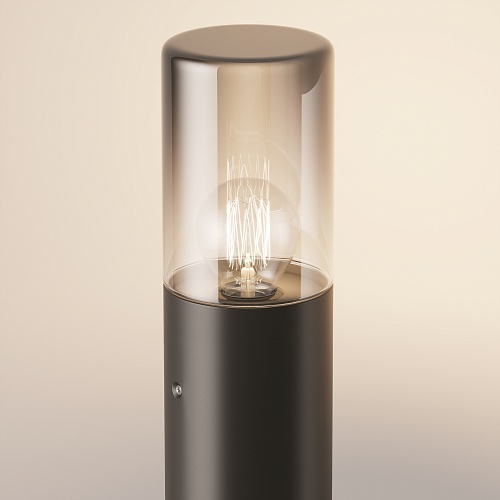 Алюминиевый корпус, цвет - графит. Световой элемент - тонированное стекло. Источник света - лампа с цоколем Е27. Универсальная серия для современных и классических экстерьеров. Защита IP54.