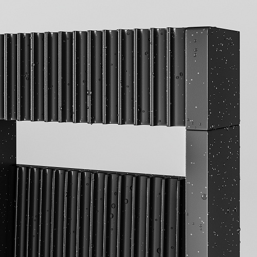 Материал корпуса - алюминий, цвет - графит. Два варианта декоративной поверхности корпуса - рифленый металл и имитация дерева. LED-источник света, цветовая температура - 3000К. Высокая степень защиты - IP65.