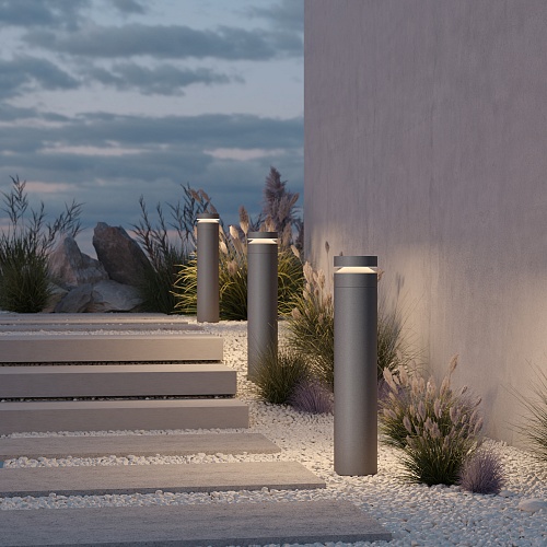 Материал арматуры — основание из алюминия, основная часть из цемента. Цвет — серый. Два вида корпуса — прямоугольный и цилиндр. Защита — IP65. LED-источник света. Цветовая температура 3000К. Высокий индекс цветопередачи CRI 90 — естественная цветопередача.