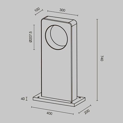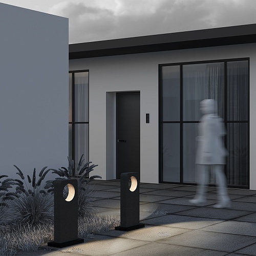 Материал арматуры — основание из алюминия, основная часть из цемента. Цвет — серый. Два вида корпуса — прямоугольный и цилиндр. Защита — IP65. LED-источник света. Цветовая температура 3000К. Высокий индекс цветопередачи CRI 90 — естественная цветопередача.