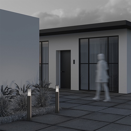 Серия садово-парковых светильников в современном стиле. Установленная в оптической части антибликовая решетка обеспечивает комфорт для наблюдателя и предотвращает световое загрязнение. Использование алюминия в качестве основного материала исключает коррози. Плафон изготовлен из устойчивого к перепадам температур пластика. В качестве источников света используются лампы c цоколем E27.