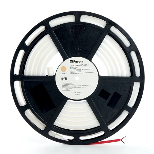 Отзывы о Светодиодная неоновая лента Feron LS651, 180SMD(2835)/m 14,4W/m 12V 5m IP68 3000К с 2 заглушками, 2 заглушками c проводом, 10 креплениями в комплекте