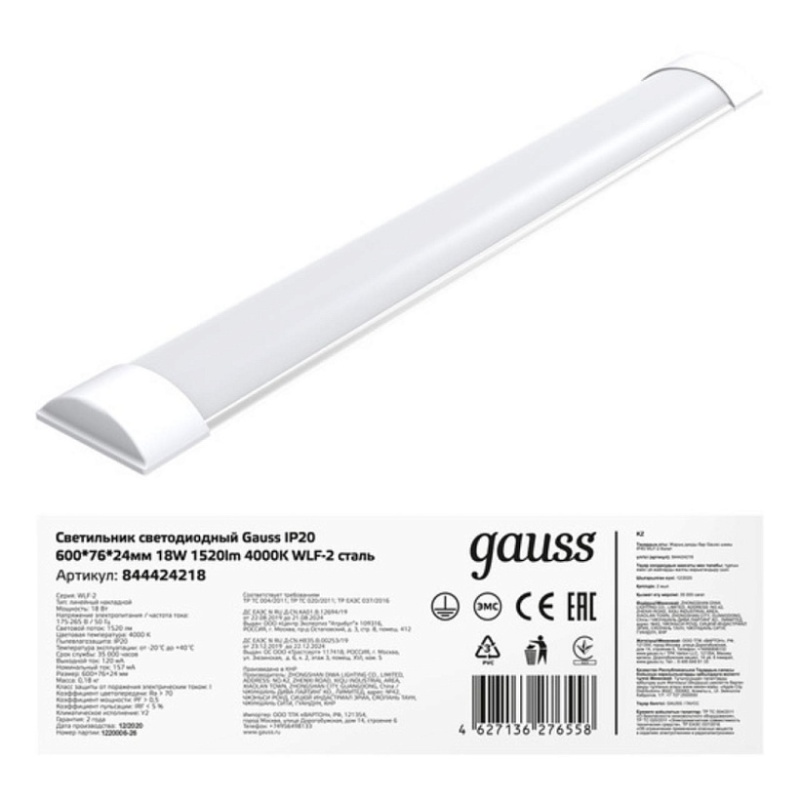 Характеристики Линейный светильник GAUSS 844424218_GAUSS