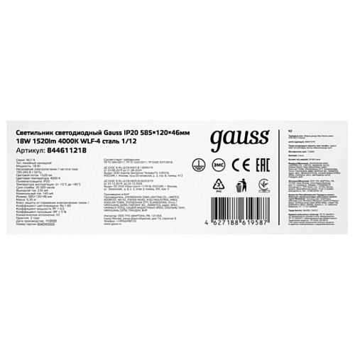 Характеристики Линейный светильник GAUSS 844611218_GAUSS