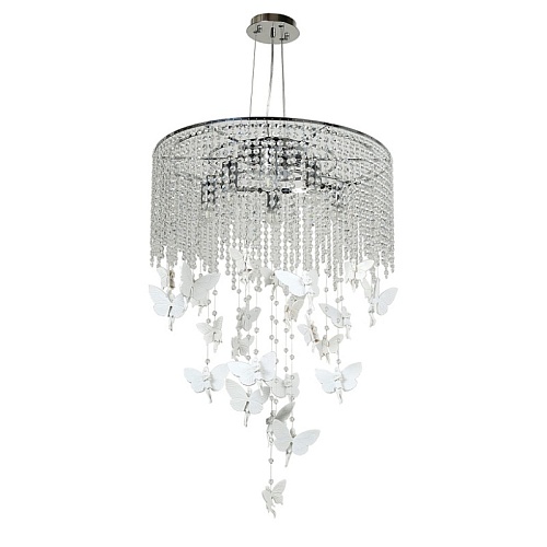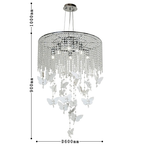 каркас цвета хром, прозрачный хрусталь высшего качества, гипсовый декор