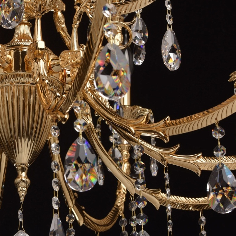 В светильниках Chiaro используются латунь, бронза, фарфор, керамика, хрусталь (K9). Поталь из золота и серебра придает дополнительный шарм.