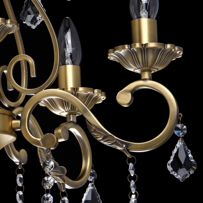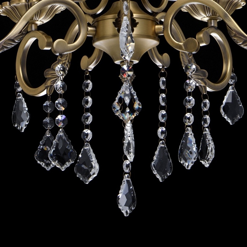 В светильниках Chiaro используются латунь, бронза, фарфор, керамика, хрусталь (K9). Поталь из золота и серебра придает дополнительный шарм.