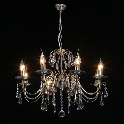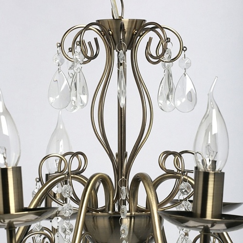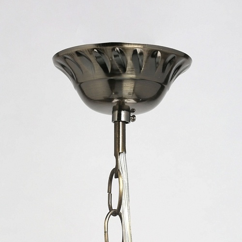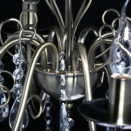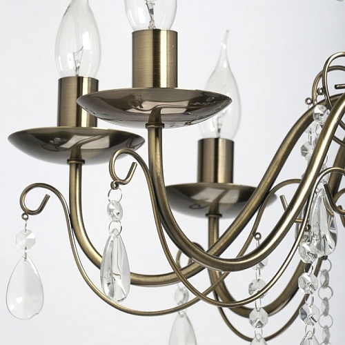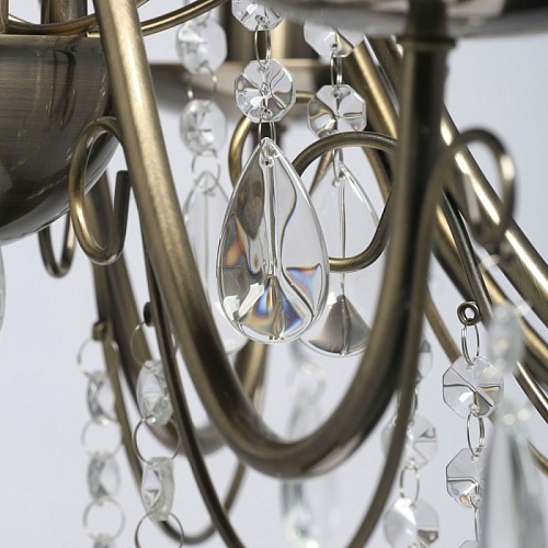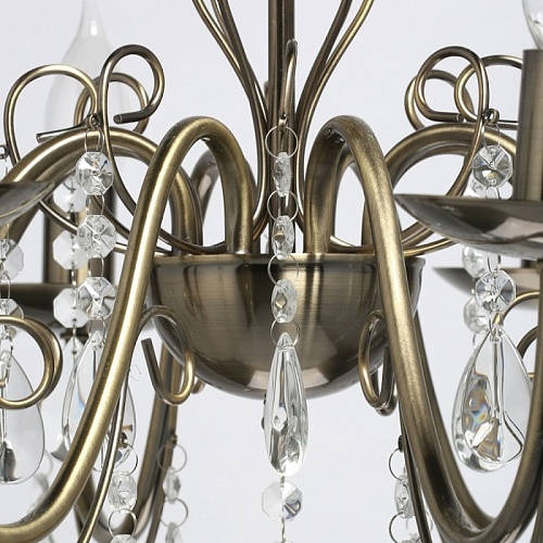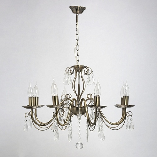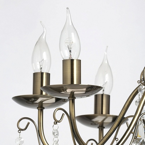 Основание светильника выполнено из металла и гальванизировано в цвет античной бронзы. Светильник декорирован прозрачным хрусталем.