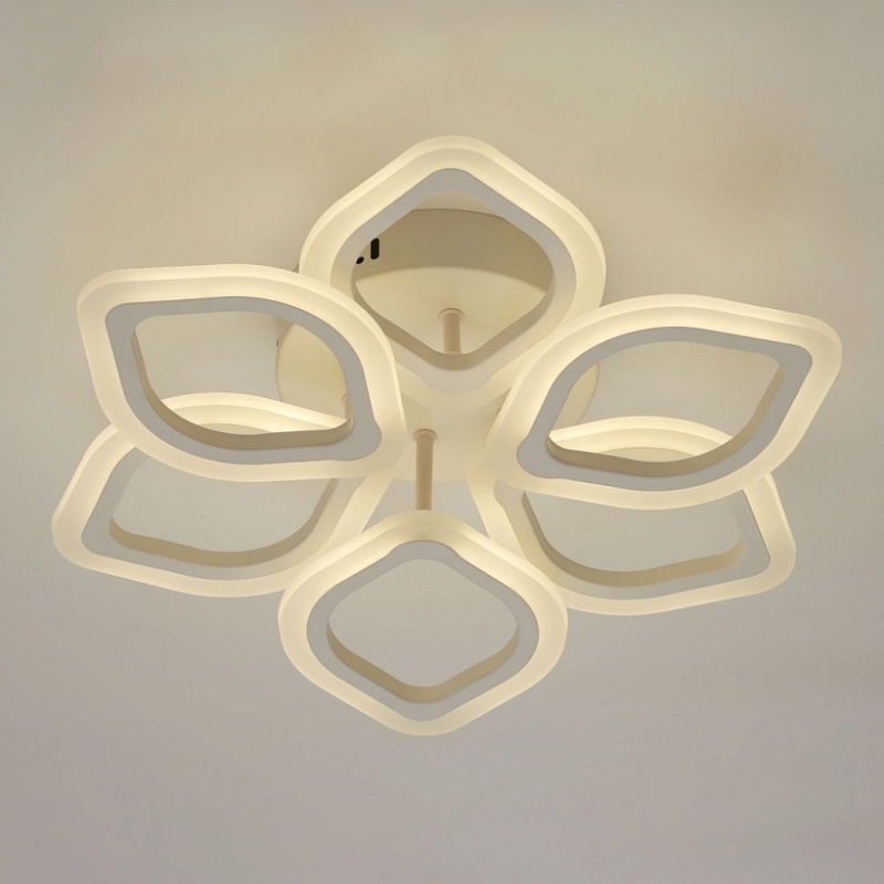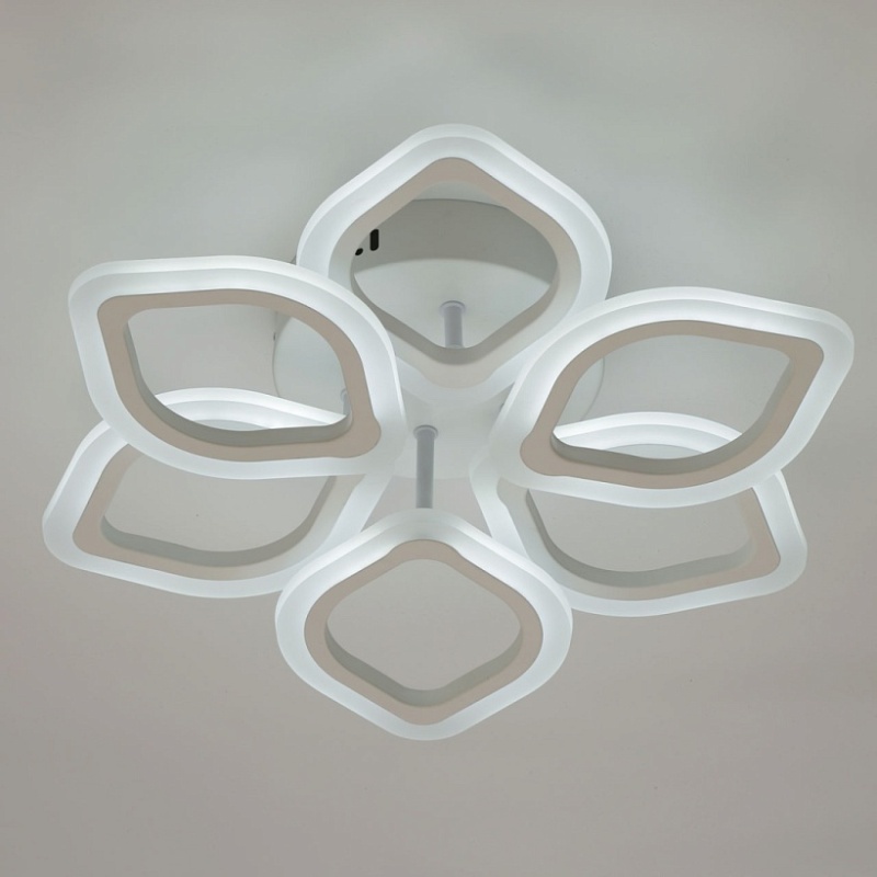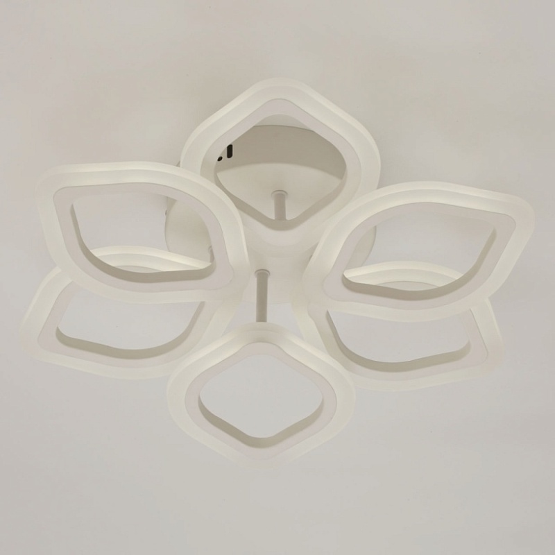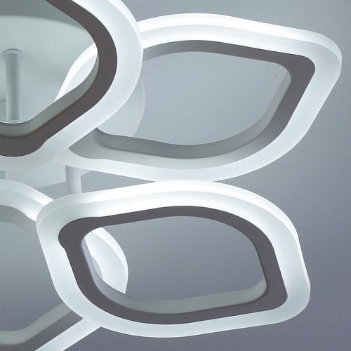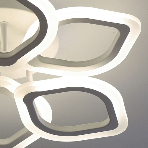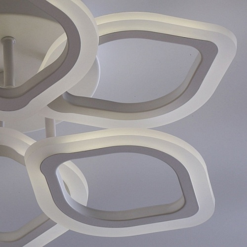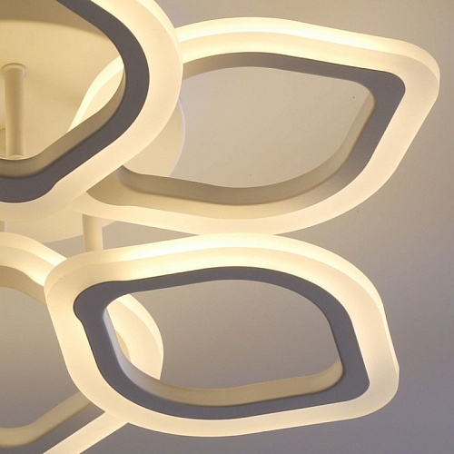 Металлическое основание светильника окрашено в белый цвет. Каркас плафона выполнен из сплава алюминия с цинком и окрашен в цвет основания. Светодиодные источники света закрыты белым матовым акрилом. Светильник приходит в состоянии частичной сборки в компактной упаковке: вся электрика подсоединена, достаточно закрепить плафоны на корпусе.