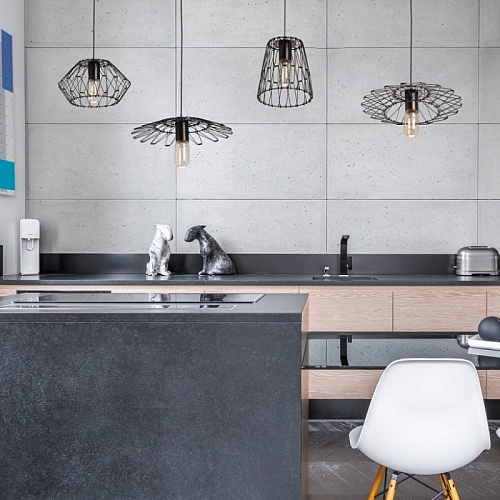 Металлическое основание подвеса и плафон-трансформер окрашены в черный цвет.