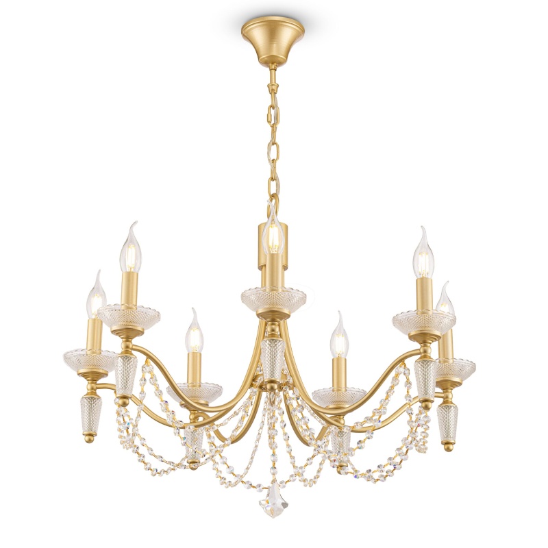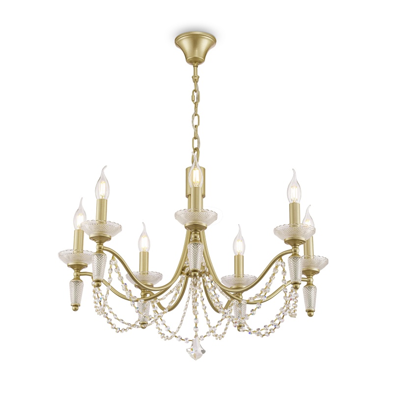 Элегантные светильники серии Zoe прекрасно впишутся в классический интерьер в теплых тонах. Главное украшение серии - декоративные элементы из рифленого стекла, напоминающие маленьких балерин в воздушных пачках, кружащихся в переливах света. Хрустальные нити и крупная каплевидная подвеска по центру усиливают игру света и создают торжественное настроение. Серия включает люстры на 12, 7 и 5 рожков и бра. Прекрасным дополнением к серии Zoe станут лампочки VOLTEGA «свеча на ветру».