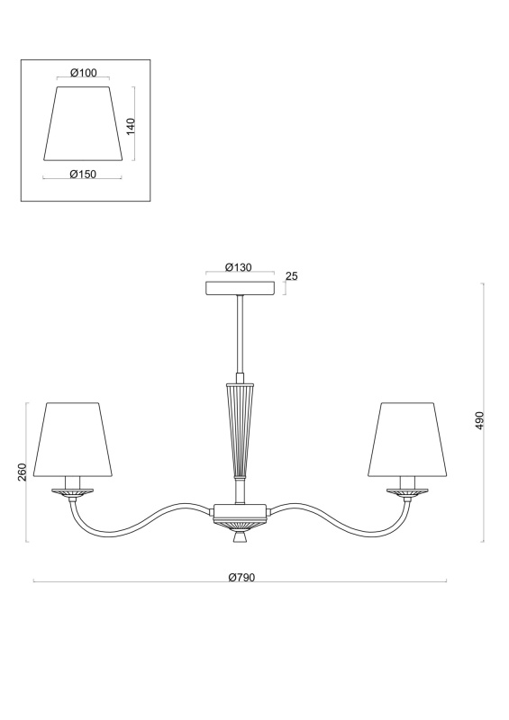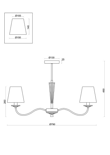 Металлическая арматура в двух оттенках на выбор: латунь и никель. Абажуры – текстиль белого цвета. Декоративные элементы из прозрачного стекла. Источник света – лампа с цоколем E14.