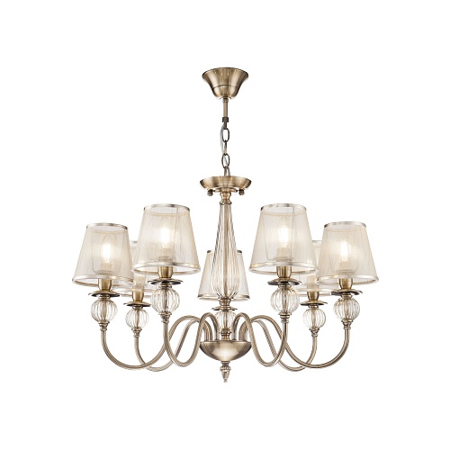 Серия в классическом стиле. Главное украшение светильников Inessa – декоративные элементы арматуры из прозрачного стекла коньячного оттенка. Абажуры выполнены из органзы и обрамлены тесьмой в цвет арматуры, сделанной из металла. Широкая линейка позволит осветить все зоны помещения в едином стиле.