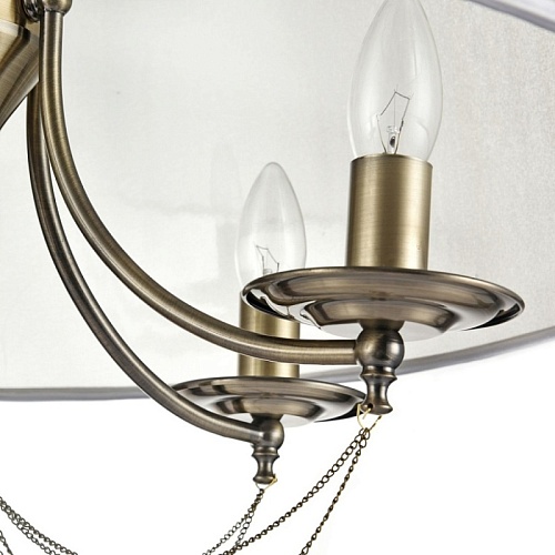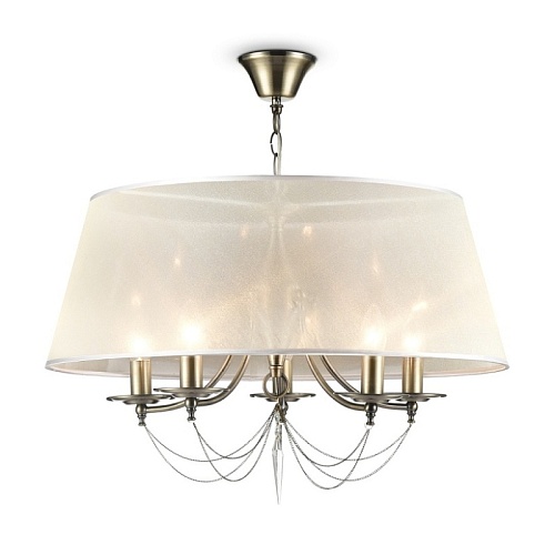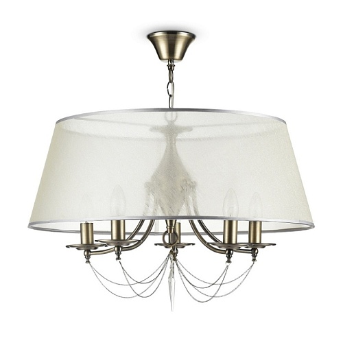 Серия светильников выполнена в классическом стиле. Абажуры светильников – из светлой органзы и хлопка, а арматура – из металла бронзового цвета. Дизайн изделий дополнен тонкими декоративными цепочками и изящными кристаллами.