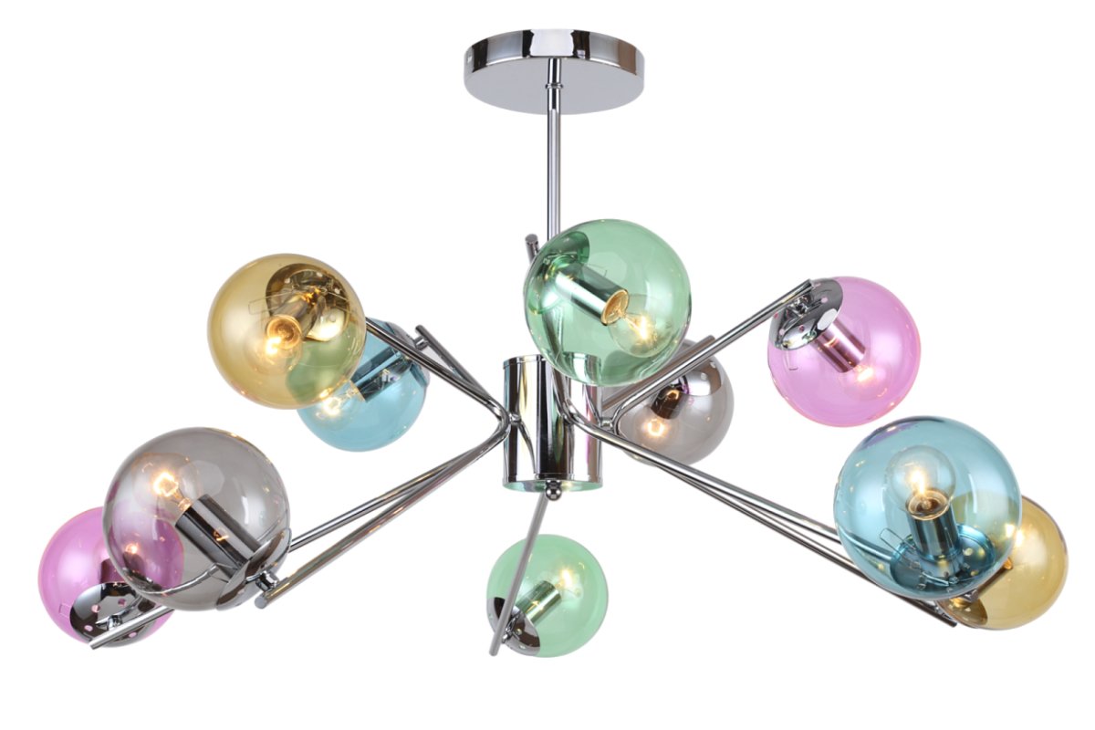 Яркая и задорная серия Nancy прекрасно подойдет для детской комнаты, станет ярким акцентом в дизайне современной кухни, а также в зале кафе кафе или ресторана. Круглые плафоны из прозрачного цветного стекла фиксируются на пружинах. Серия включает 3 потолочные люстры на 6, 8 и 10 рожков и бра. Плафон на бра выполнен в светло-сером цвете, что позволяет комбинировать его со всеми люстрами серии, а также другими изделиями бренда.