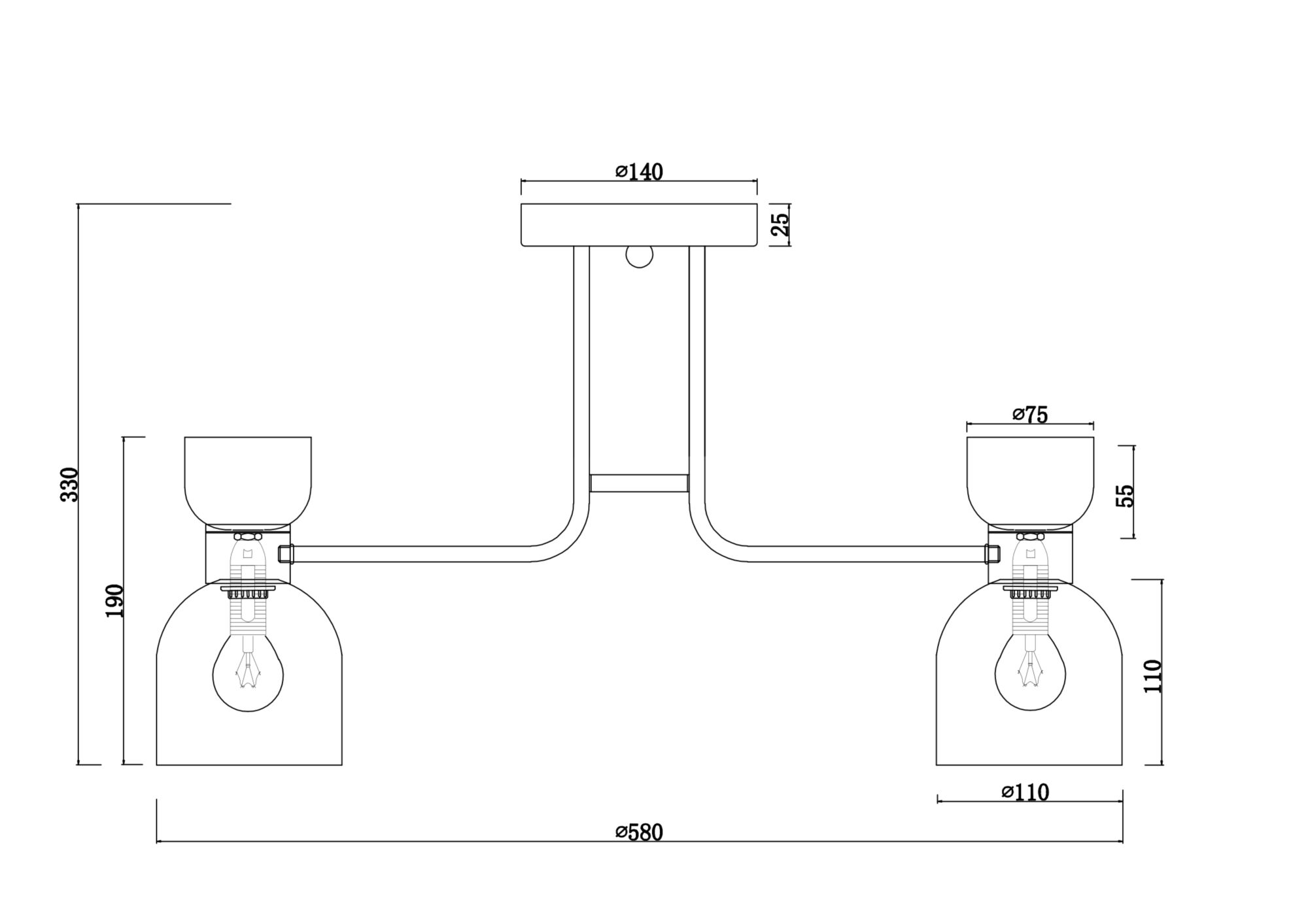• Диаметр потолочной чаши (мм)