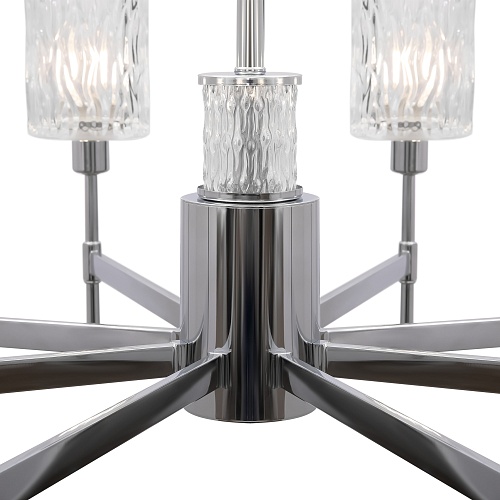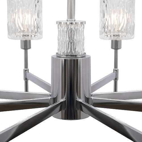 Хромированная металлическая арматура. Плафоны – фактурное прозрачное стекло. В качестве источника света используется лампа с цоколем Е14.