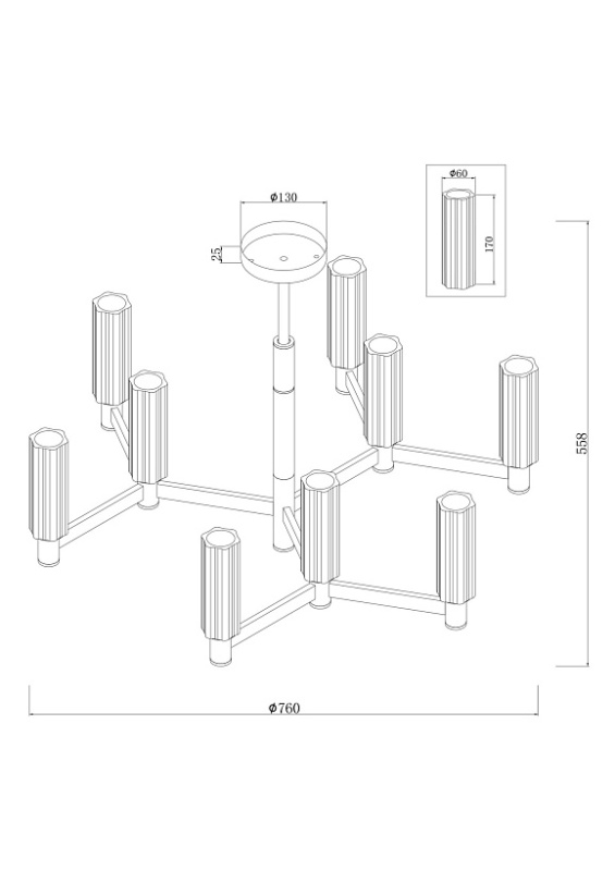 • Диаметр потолочной чаши (мм)