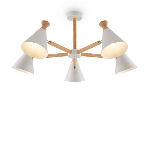Арматура и плафоны из металла в белом цвете. Декоративные элементы из натурального дерева. Поворотные плафоны для регулировки светового потока. Источник света – лампа с цоколем E14.