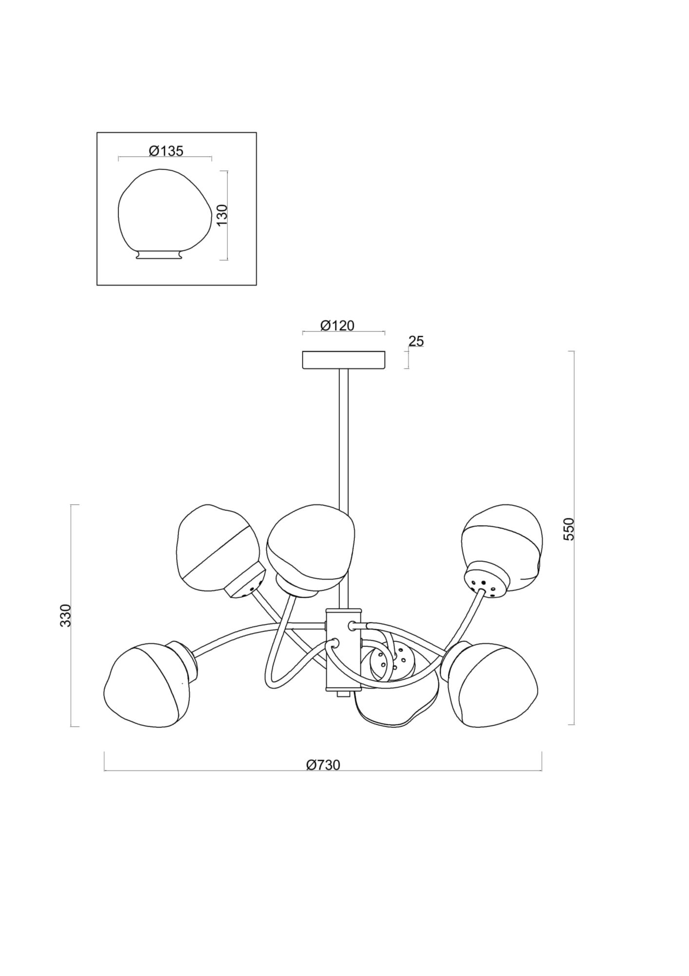 • Диаметр потолочной чаши (мм)