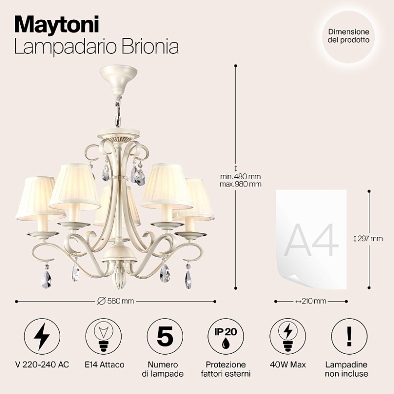 Характеристики Люстра Maytoni Brionia ARM172-05-G