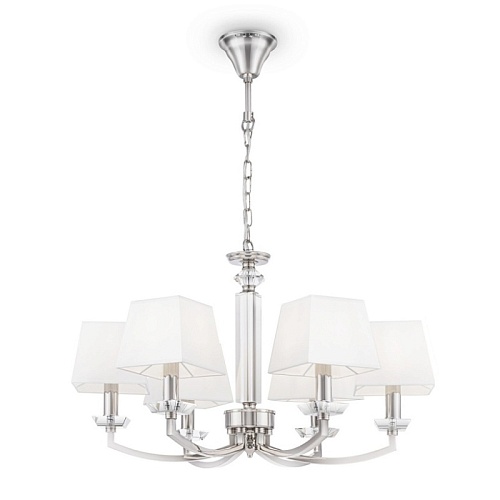 Светильники серии Chandler характеризуются остротой углов и четкостью линий. Арматура изготовлена из металла и покрыта хромом. На рожках квадратного сечения установлены абажуры из ткани на ПВХ трапециевидной формы. Конструкция дополнена декоративными вставками из прозрачного литого стекла. Высоту люстр возможно изменить, регулируя длину цепи.
