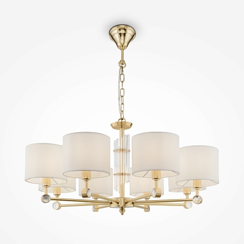 Грация классики и современные формы — популярный тандем, который активно используется в светодизайне. Серия удивляет асимметричным стеклянным декором, украшающим центральную ось светильника. Металлическая арматура отличается сдержанностью и строгостью, равно как и геометрически выверенные рожки. О благородстве и изяществе классики напоминают широкие белые абажуры, выполненные из текстиля —они делают свет мягким и уютным. В серии, представленной тремя регулируемыми по высоте люстрами, несколькими бра, торшером и настольной лампой, вы сможете найти светильник, предназначенный для любых целей и задач, а также подобрать комплексное освещение пространства.