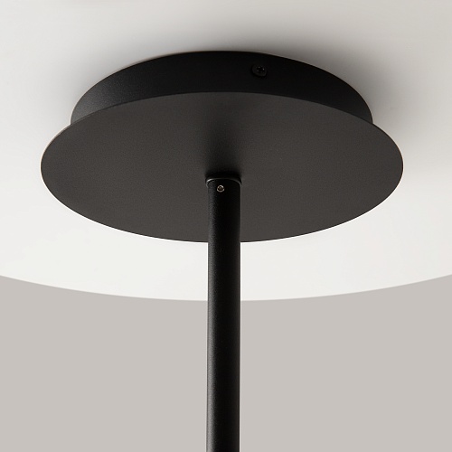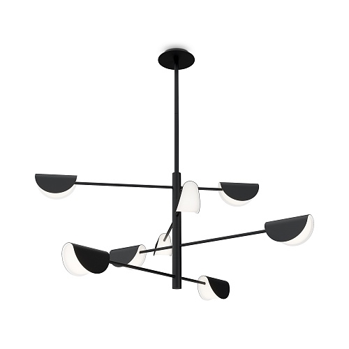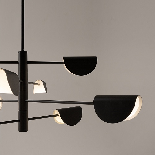 Арматура и плафоны из металла, цвет – черный. Оригинальная форма плафона с плавным контуром. Источники света скрыты под акриловым рассеивателем.