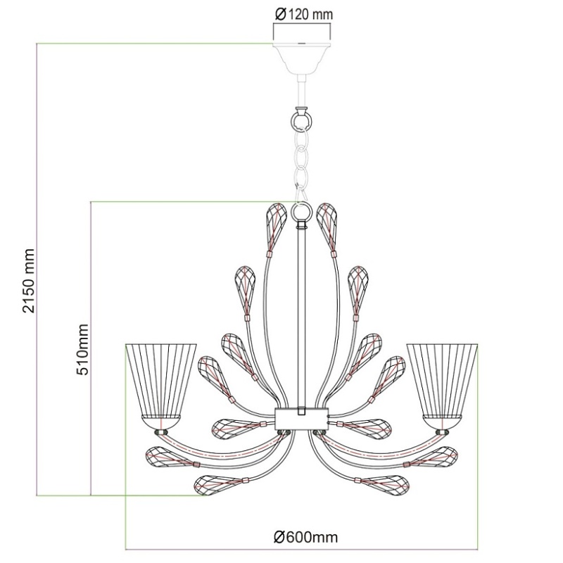 • Диаметр потолочной чаши (мм)