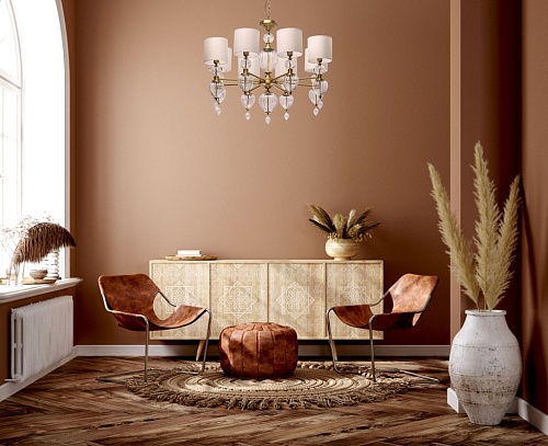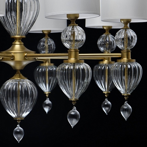 В светильниках Chiaro используются латунь, бронза, фарфор, керамика, хрусталь (K9). Поталь из золота и серебра придает дополнительный шарм.