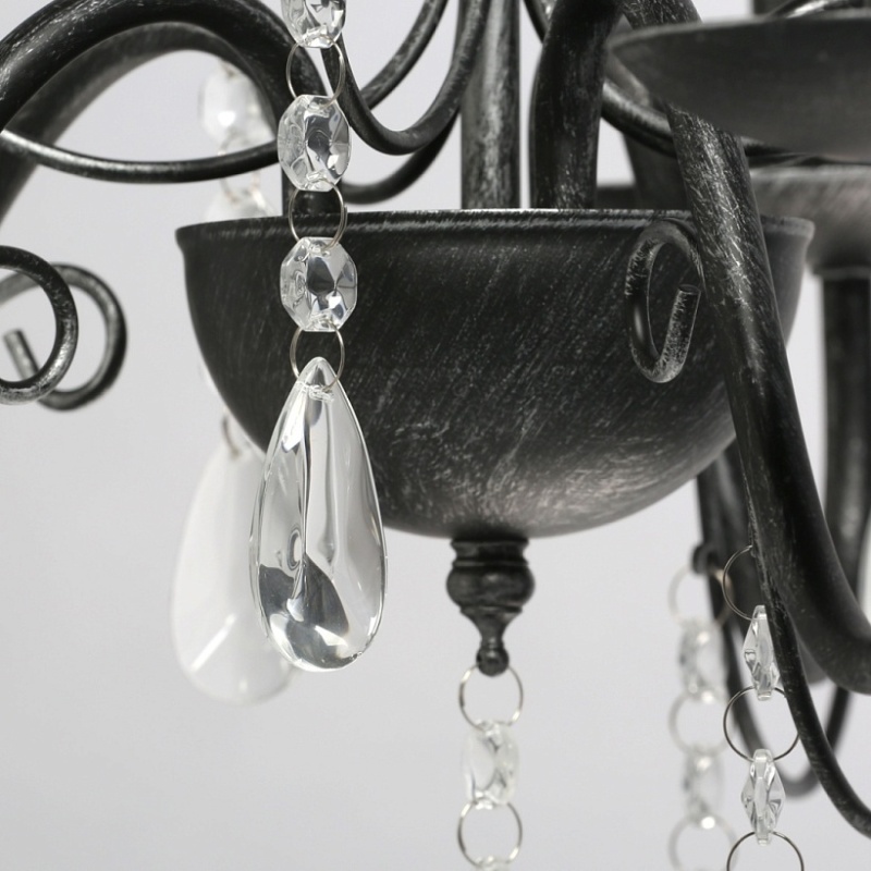 Основание светильника выполнено из металла и обработано по технологии хай-лайт, где основной слой черного цвета, а декоративный слой серебряного цвета. Светильник декорирован прозрачным хрусталем.