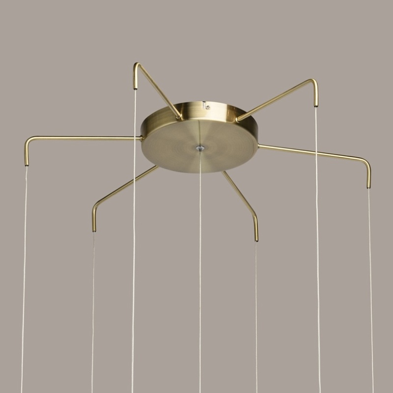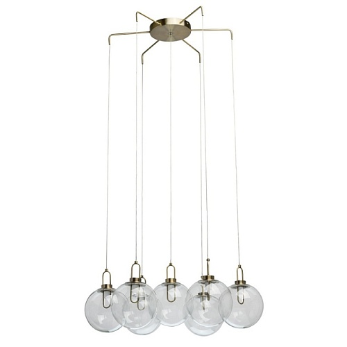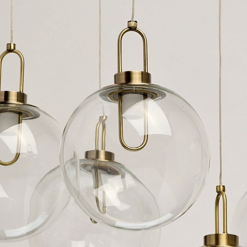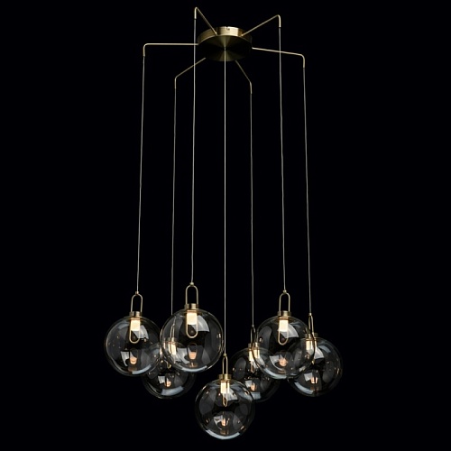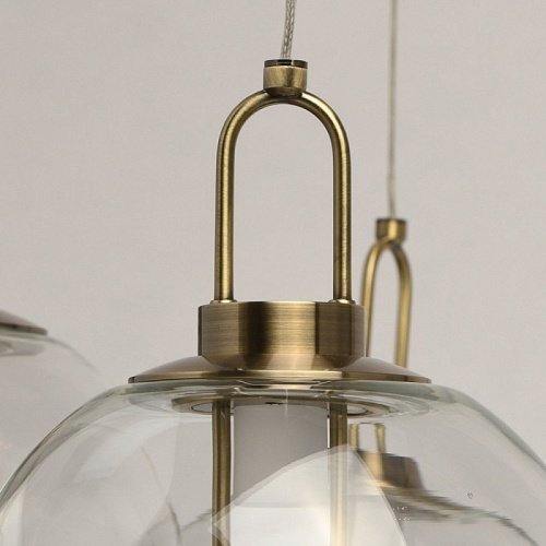 Основание: комбинация сплавов металлов, гальванизация в цвет античной бронзы, лакирование.Потолочная чаша: металл.Держатель плафонов: сплав алюминия, художественное литье. Плафоны: прозрачное стекло.Светодиодные источники света типа СОВ закрыты белым матовым акрилом.