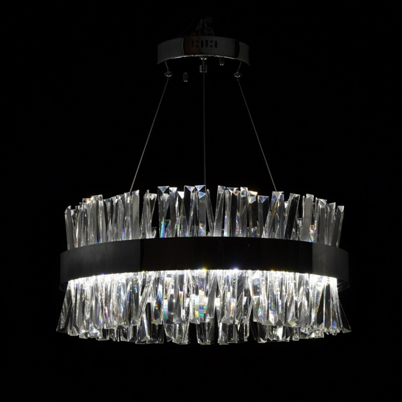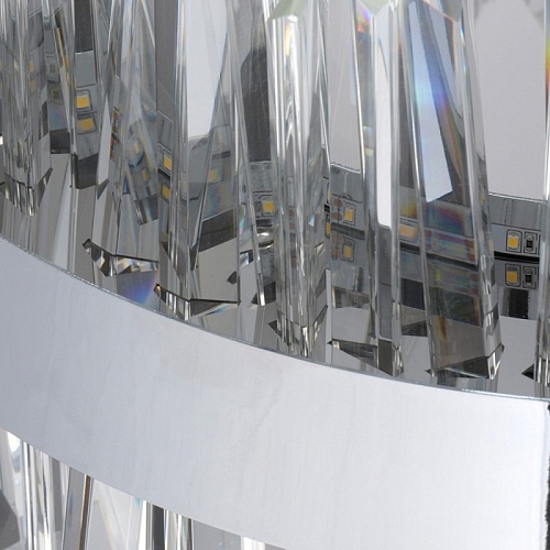 Основание выполнено из нержавеющей стали отполированной до зеркального блеска.Декор - прозрачный хрусталь прямоугольной формы.