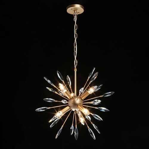 Металлическое основание светильника гальванизировано в цвет золота. Светильник декорирован прозрачным хрусталем.