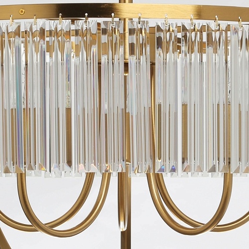 Металлическое основание светильника гальванизировано в цвет бронзы. Светильник декорирован прозрачным хрустальным стеклом.