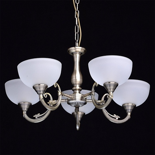 Арматура светильника выполнена из комбинации сплава железа и сплава алюминия и гальванизирована в цвет античной бронзы с эффектом патинирования. Основание выполнено из сплава железа по технологии прессования. Центральная ось и рожки выполнены из сплава алюминия по технологии художественного литья в кокиль под давлением. Плафоны изготовлены из прозрачного стекла , обработанного по технологии пескоструйного матирования.