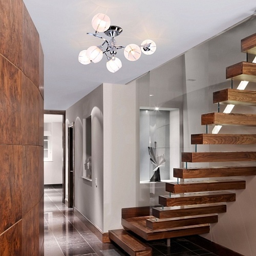 • Важный фактор для потолочных ламп и люстр – направление рассеивания света. Есть различные варианты и направления. В сторону, вверх или вниз, на пол. Если вы выбрали направление «вверх», следует рассмотреть более мощную лампу, так как освещение будет происходить при помощи отраженного от потолка света.