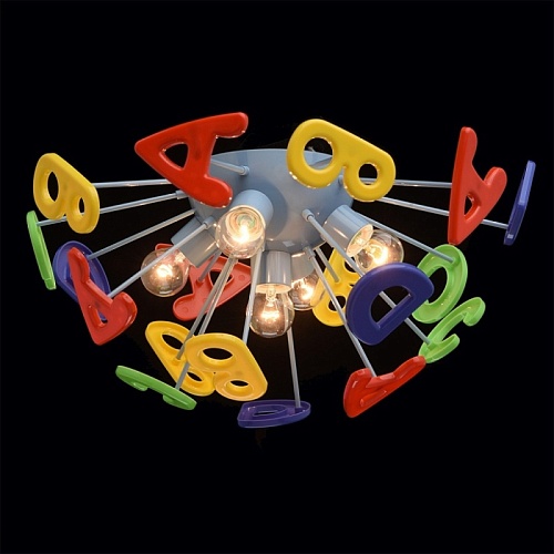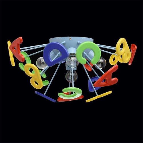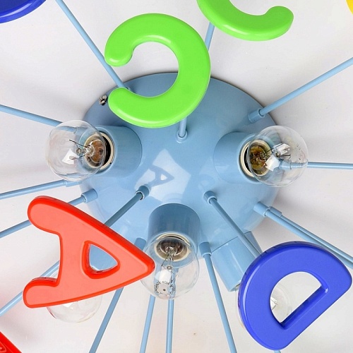 Основание светильника выполнено из сплава металла и окрашено в синий цвет. Светильник декорирован латинскими буквами из высококачественного акрила, окрашенного в разные цвета.