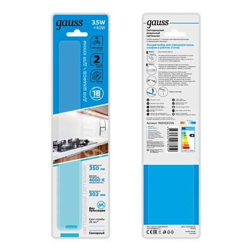 Характеристики Мебельный светильник GAUSS 9024531235_GAUSS