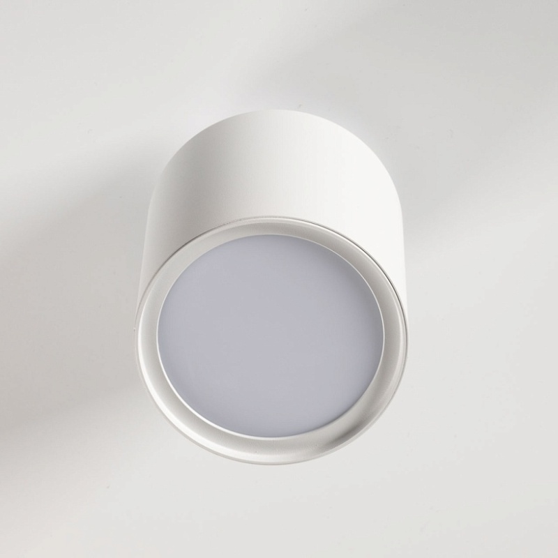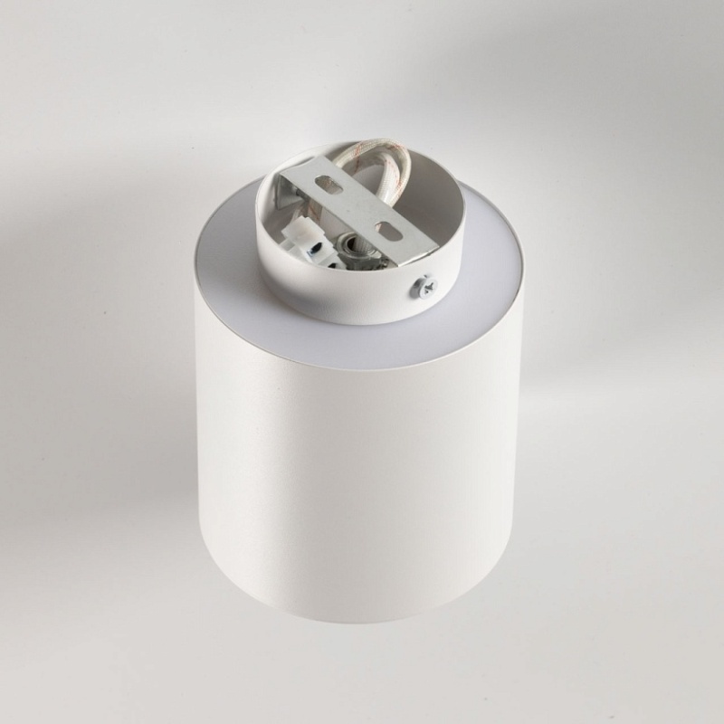 Металлическое основание обработано по технологии порошкового окрашивания в белый цвет. Плафон выполнен из сплава алюминия с цинком и окрашен в цвет основания. Светодиодный источник света закрыт матовым акрилом.