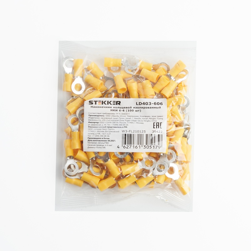 Характеристики Наконечник кольцевой изолированный НКИ 6-6, LD403-606 (упаковка 100 шт)