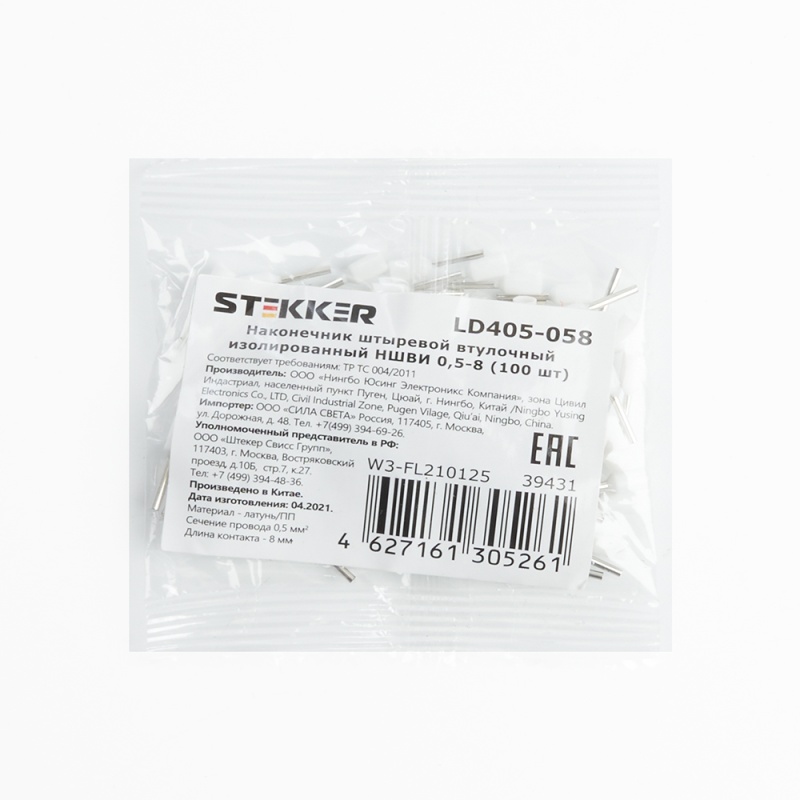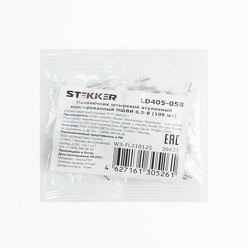Наконечник штыревой втулочный изолированный НШВИ 0,5-8, LD405-058 (упаковка 100 шт) 39431