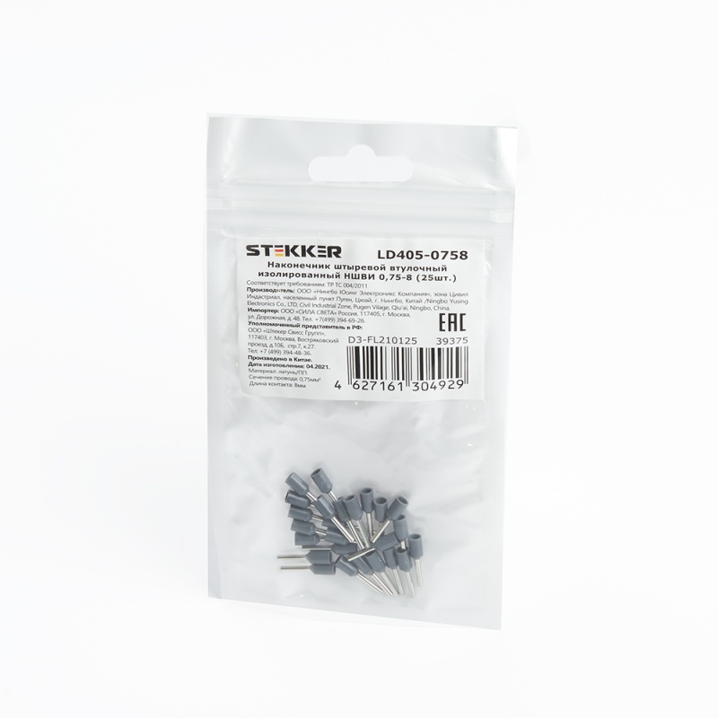 Наконечник штыревой втулочный изолированный НШВИ 0,75-8, LD405-0758 (DIY упаковка 25 шт) 39375