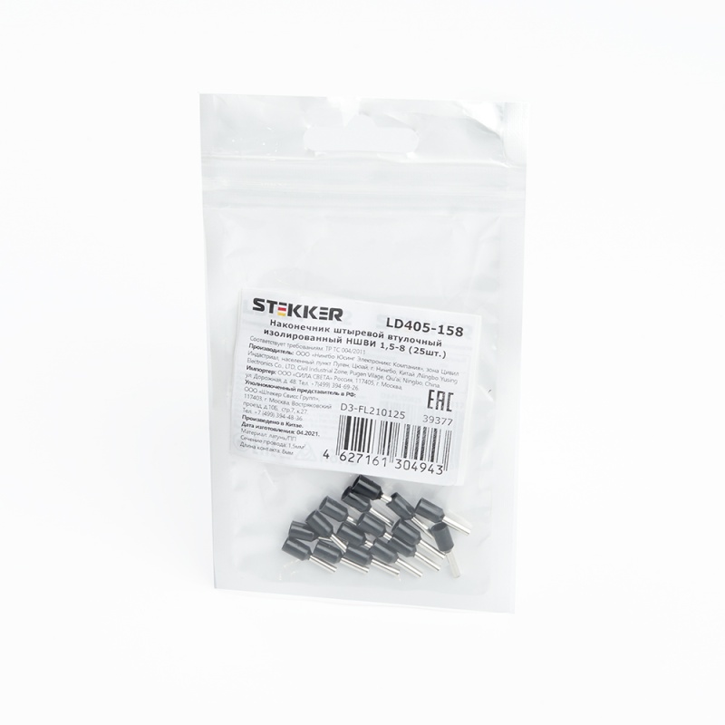 Наконечник штыревой втулочный изолированный НШВИ 1,5-8, LD405-158 (DIY упаковка 25 шт) 39377
