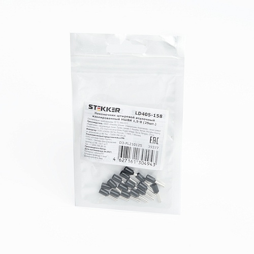 Характеристики Наконечник штыревой втулочный изолированный НШВИ 1,5-8, LD405-158 (DIY упаковка 25 шт)