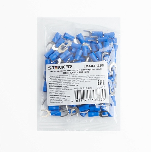 Характеристики Наконечник вилочный изолированный НВИ 2,5-5, LD404-255 (упаковка 100 шт)