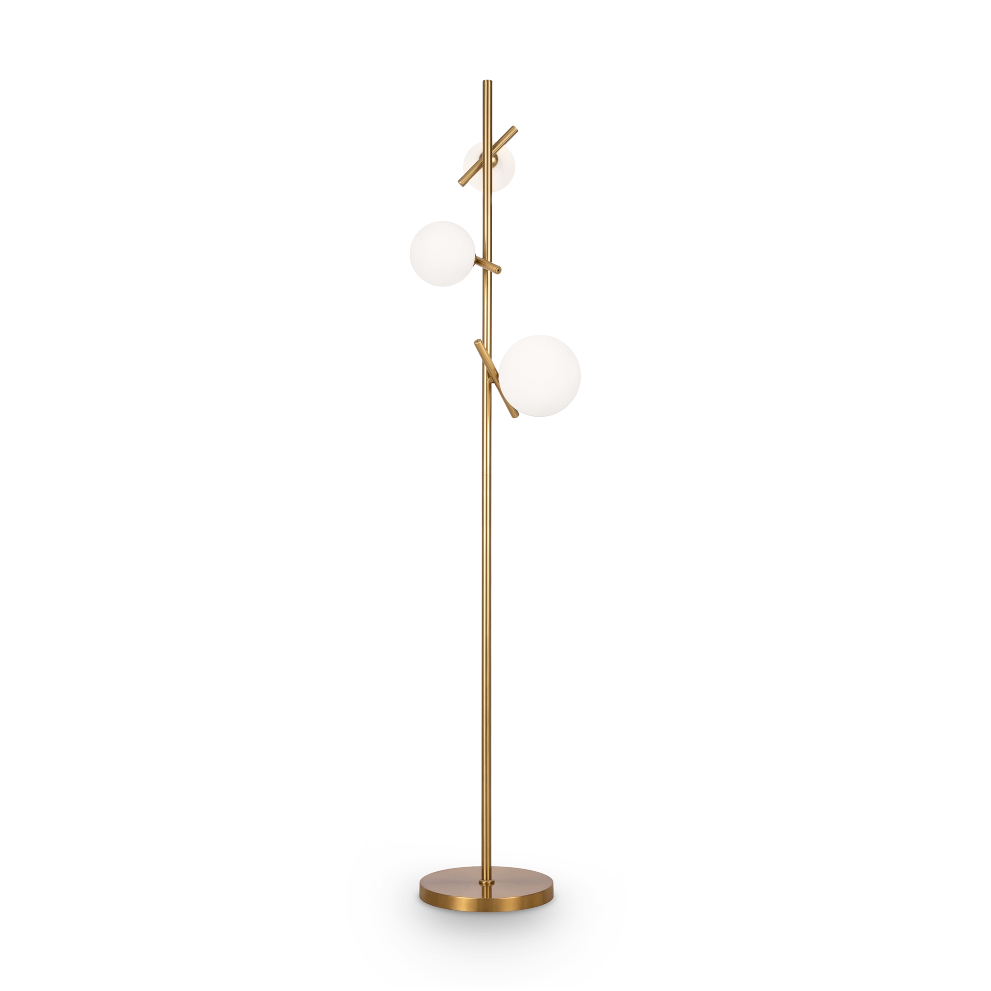 Материал арматуры — рифленый металл, цвет — латунь. Плафоны-сферы из белого матового стекла для мягкого заливающего света. Воздушный образ плафонов, строгие тонкие линии арматуры придадут интерьеру изящество и легкость. Высота подвесов регулируется. Источник света — лампы с цоколем G9.